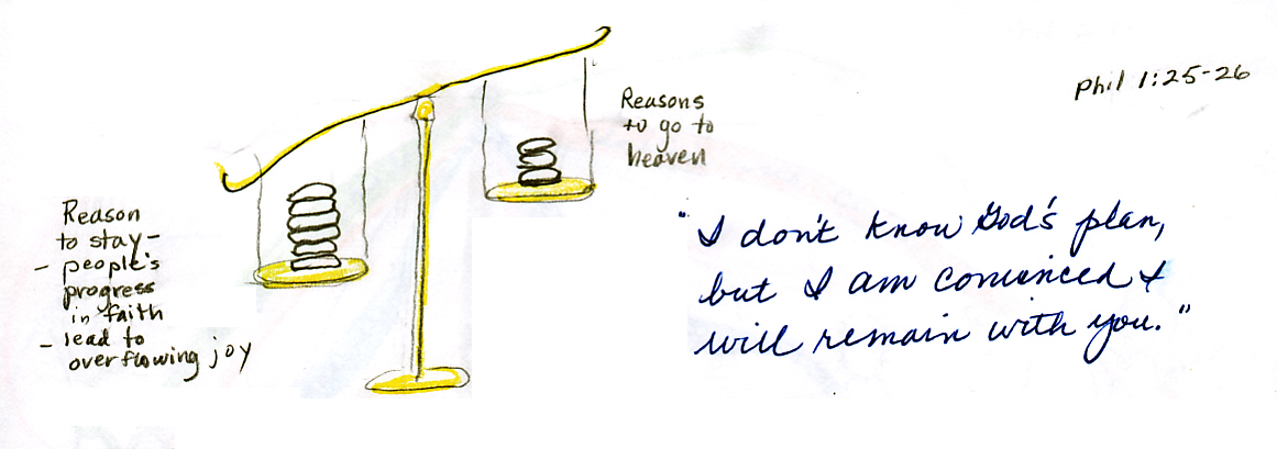 Paul was convinced he would get out of prison and continue journeying to spread the Good News. But that wasn’t God’s plan. I have often had the same experience–thinking I know where God is leading me, and suddenly there’s a U-turn. But I don’t have to worry. God has a plan for me.