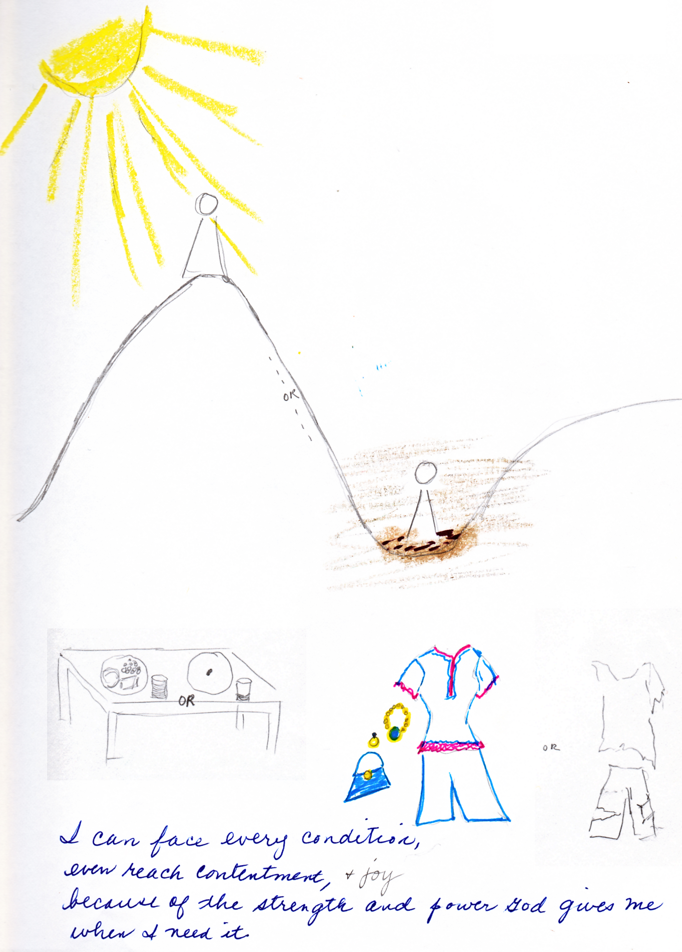 Actually, I don’t have a sense of needing anything personally. I’ve learned by now to be quite content whatever my circumstances. I’m just as happy with little as with much, with much as with little. I’ve found the recipe for being happy whether full or hungry, hands full or hands empty. Whatever I have, wherever I am, I can make it through anything in the One who makes me who I am. I don’t mean that your help didn’t mean a lot to me—it did. It was a beautiful thing that you came alongside me in my troubles.