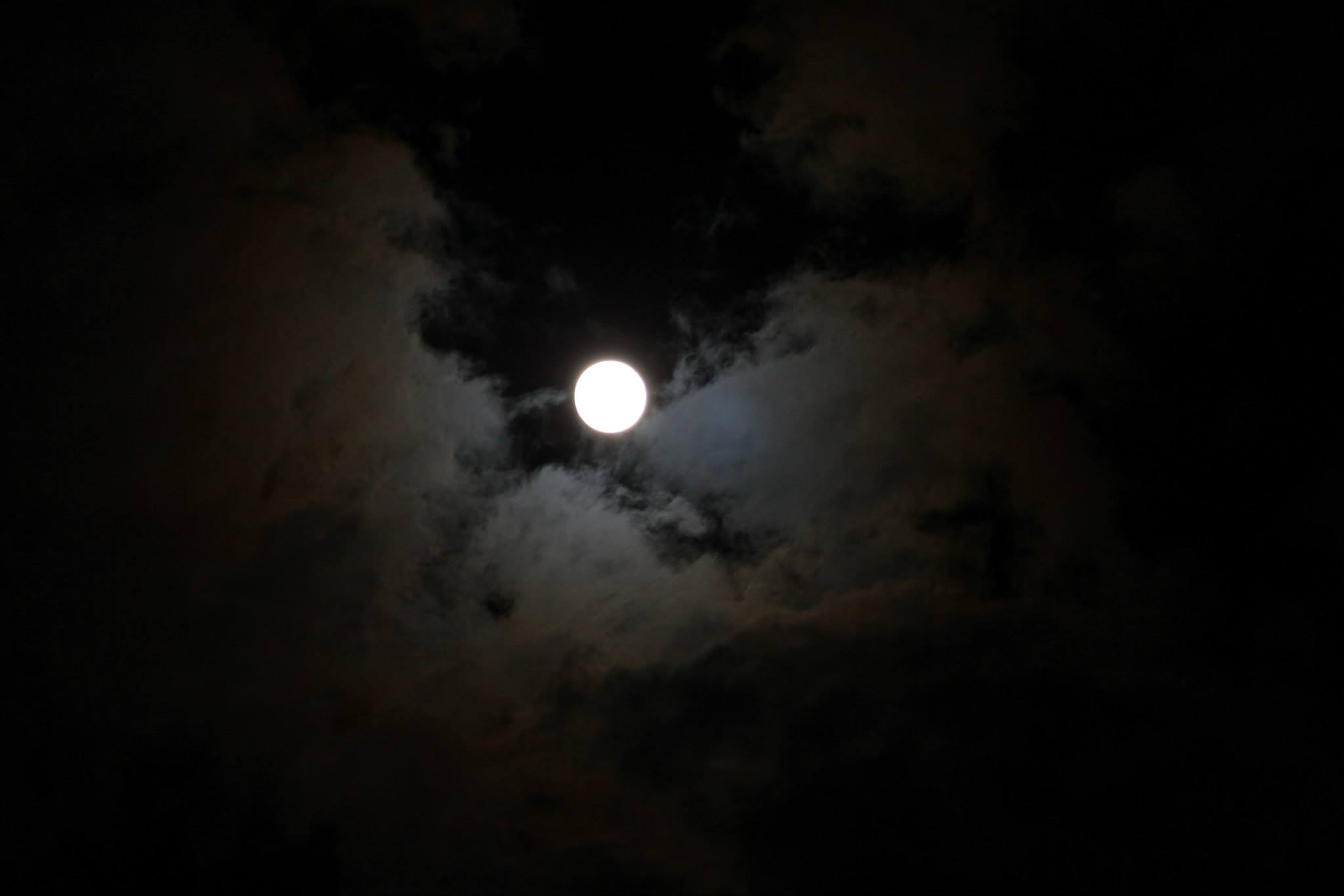 The moon shines in the darkness.
