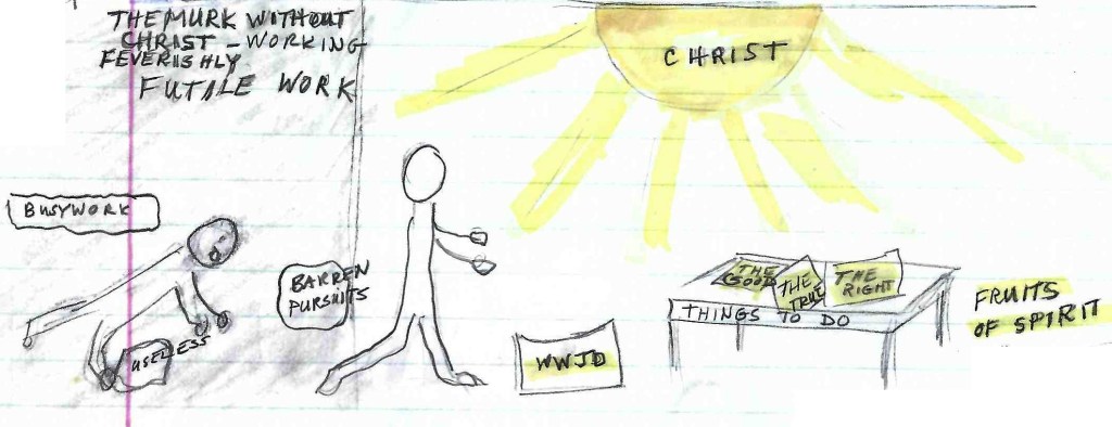 Paul talks to us here about how our lives should be different when we are believers in The Way than they were before we were saved. Faith not only changes us inside, but grows to be more and more visible as our relationship with God grows deeper. He starts by telling us, “Watch what God does, and then you do it.” Then he says, “You groped your way through that murk once, but no longer. You’re out in the open now. The bright light of Christ makes your way plain.” No more excuses.