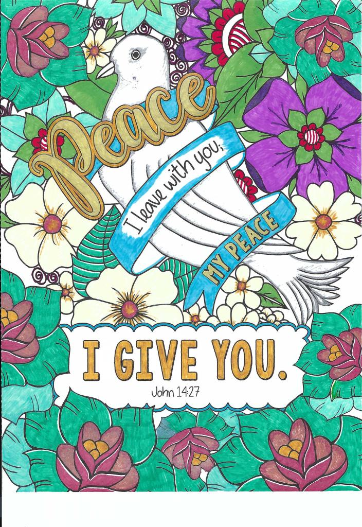So, when I need to keep my eyes and hands engaged in order to relax, I color. I use gel pens and colored pencils, sometimes I doodle whatever’s on my mind, and sometimes I find something in a coloring book. My favorite go-to source for this supply is Hobby Lobby as they carry an ever-renewing source of inspirational and scriptural books from a variety of artists and publishers.