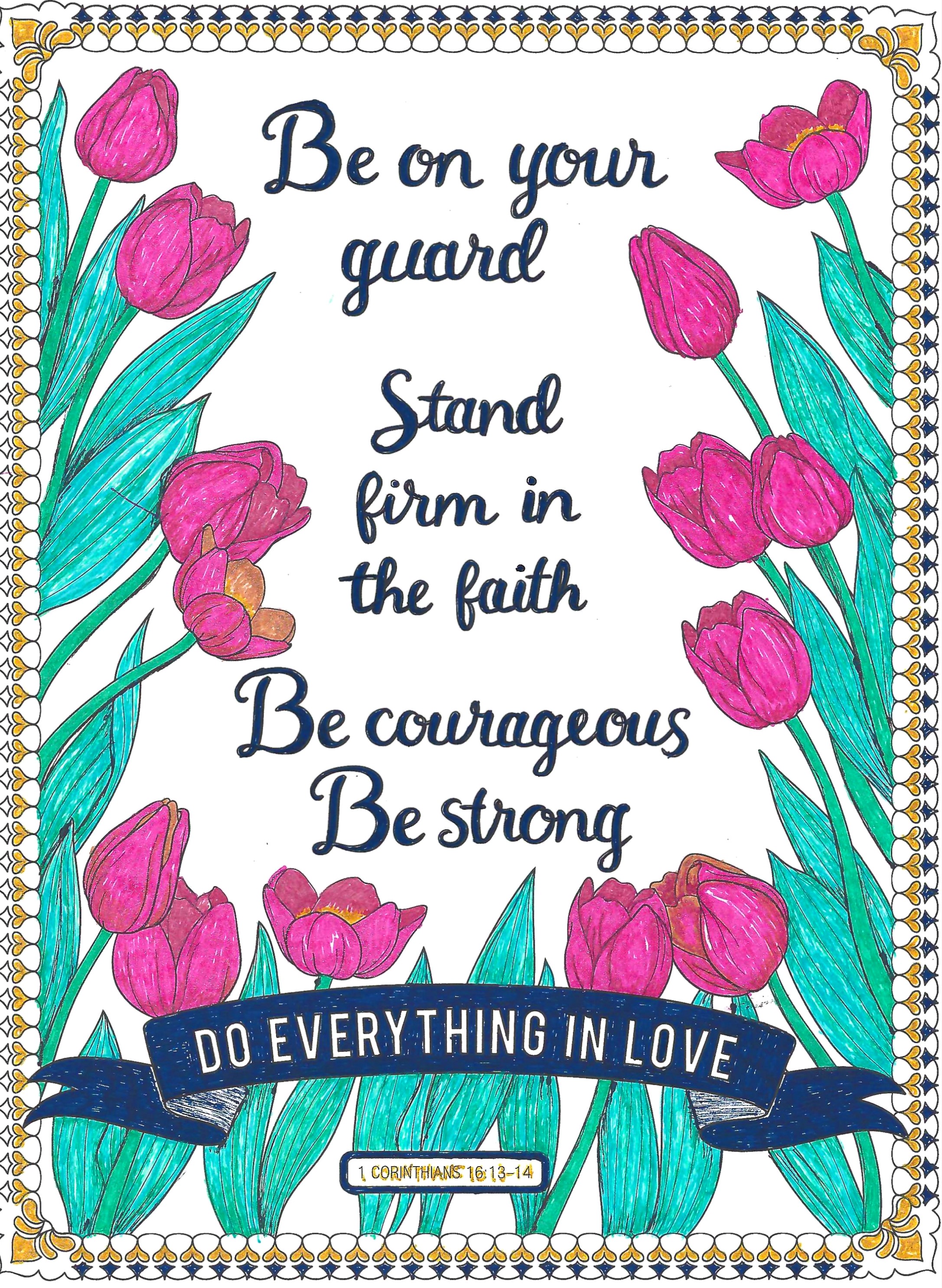 Citing my picture sources: Doing something creative is my favorite! And I love visuals–not only do they help me learn, but they take me places in my mind. I also use them to meditate on scripture or doodle a picture of what I hear from God through scripture. So, when I need to keep my eyes and hands engaged in order to relax, I color. I use gel pens and colored pencils, sometimes I doodle whatever’s on my mind, and sometimes I find something in a coloring book. My favorite go-to source for this supply is Hobby Lobby as they carry an ever-renewing source of inspirational and scriptural books from a variety of artists and publishers.