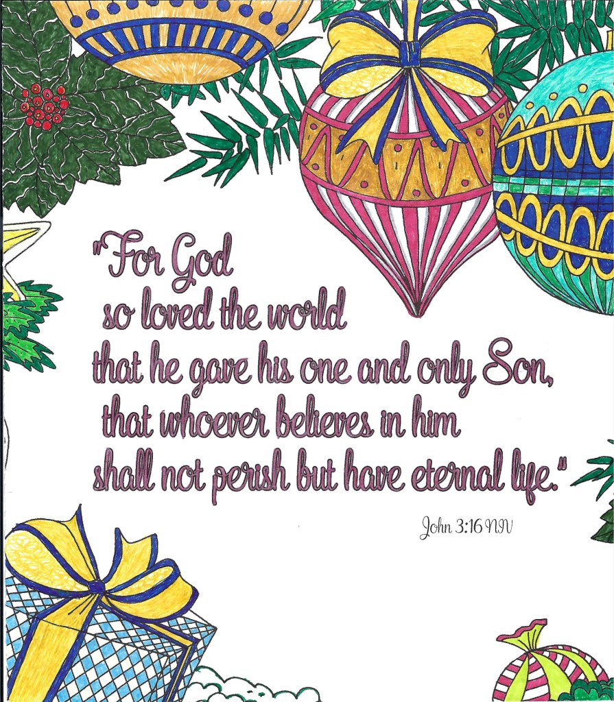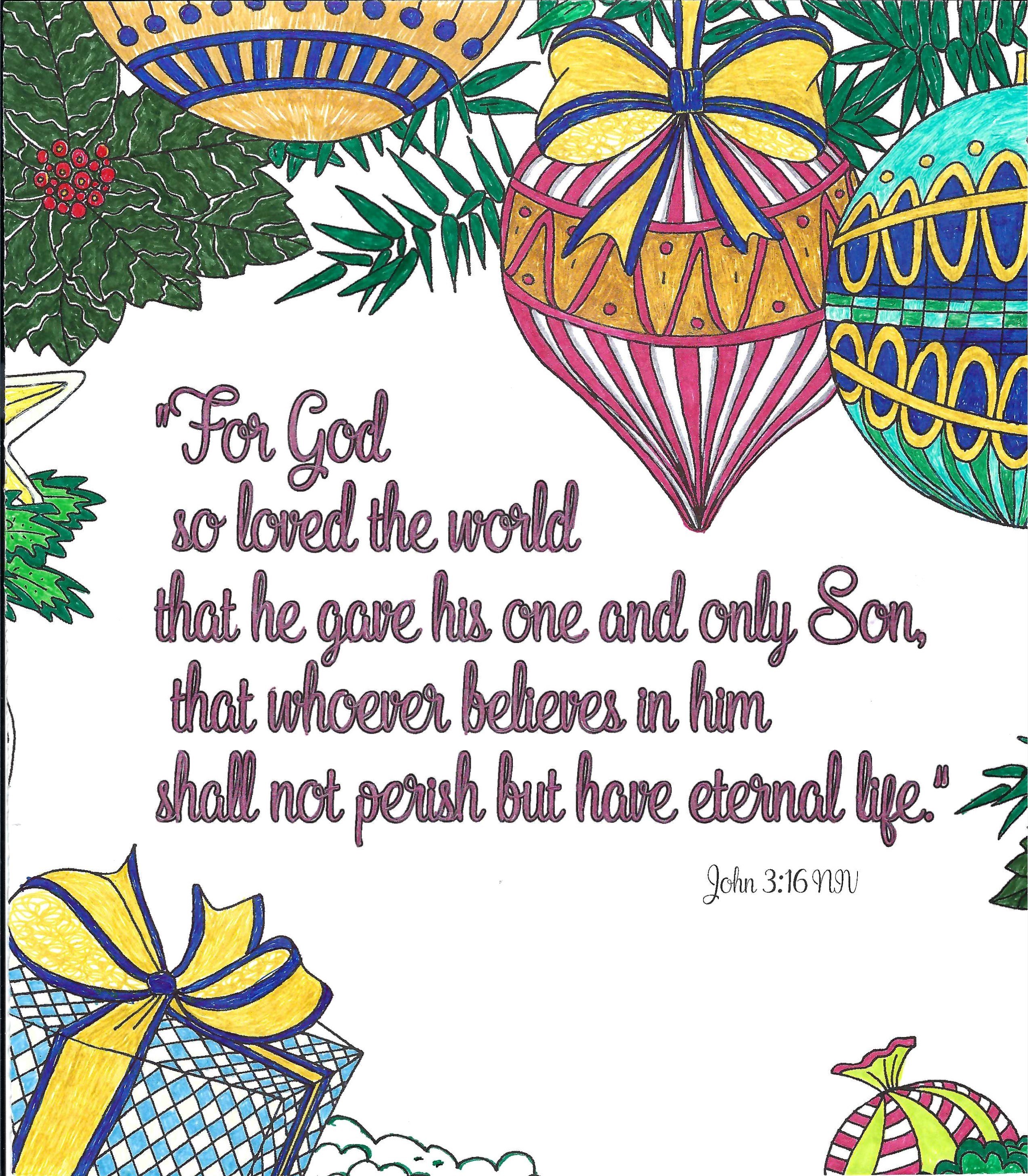December 25, 2024December 11, 2024 by Kathleen S. Evenhouse Bookmark Bible Doodle: John 3:16 Thank you, God, for the truth of your son’s birth. Share this: Click to share on Pinterest (Opens in new window) Pinterest Click to share on LinkedIn (Opens in new window) LinkedIn Click to share on X (Opens in new window) X Click to share on Facebook (Opens in new window) Facebook Click to email a link to a friend (Opens in new window) Email Click to print (Opens in new window) Print Like Loading... Related