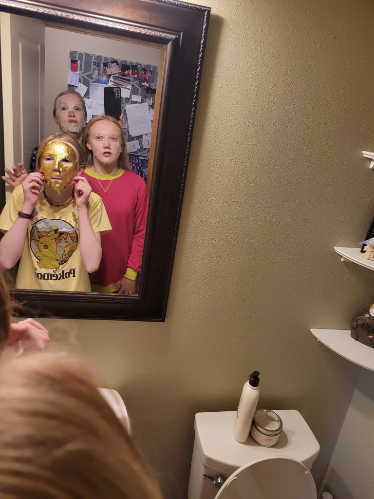 Had fun with grandkids over spring break this year. Two stayed over, and two more joined us for a day. Son Jim joined us for supper and a game of Catch Phrase—my all time favorite game. Girls had a spa day. Three played all morning on a Switch. Iit’s amazing how noisy video games can be, and I’m talking about the people playing. Spa morning and giving each other face massages was fun. Long walk with the dogs on a warm day. And Kendall came with me to Smokey Row to read in peace while I caught up on a few projects. Doug had his special birthday dinner with carbonara (a dish his mother learned in Italy and shared with Lynn). Grandpa and Oren are hanging out today while Kendall and I dressed as twinsies and are sipping coffee drinks. Oh, and stinker Oren beat us all at Dice Forge, which he had never played before. Grandpa pulled out a win in Hearts at the last minute.