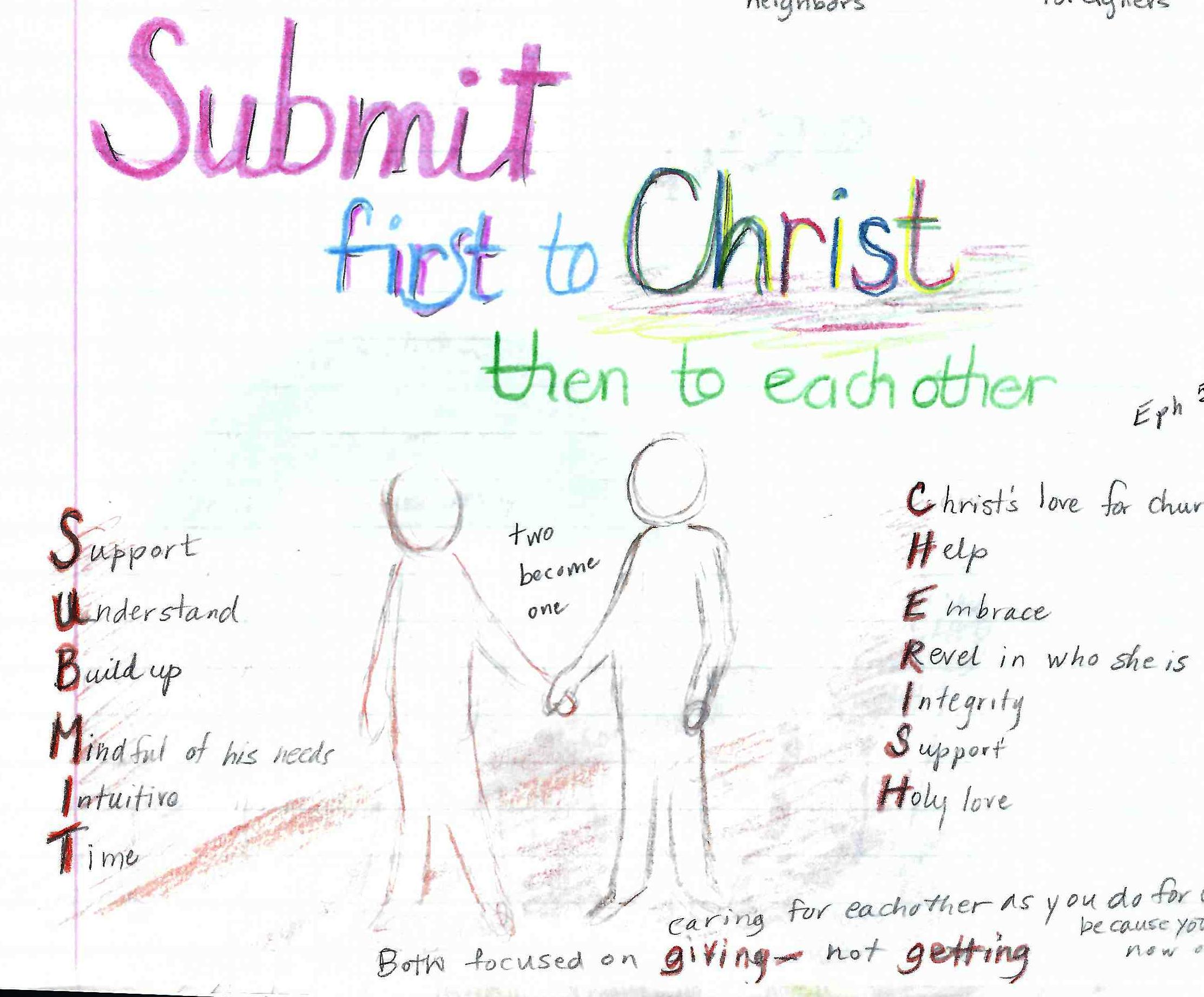 Submit is not a popular word in today’s world. We tend to focus on ourselves—our wants, needs, dreams—rather than on God, on family, on neighbors. The Bible tells us another way to look, focus, and live.