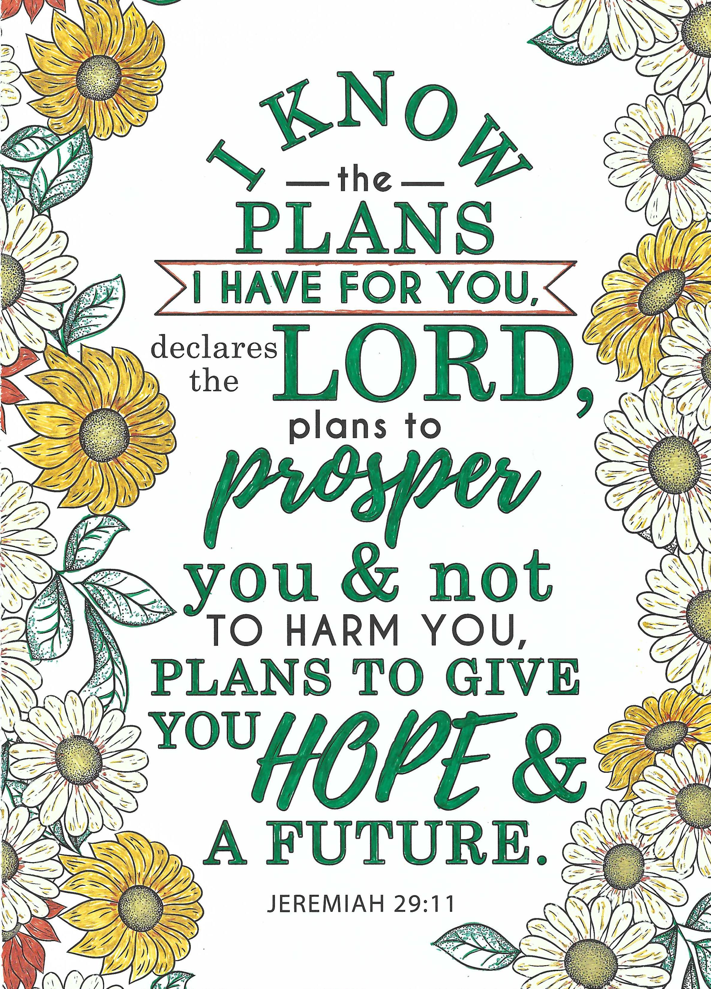 October 22, 2025September 23, 2025 by Kathleen S. Evenhouse Bookmark Bible Doodle: Jeremiah 29:11 I’ll show up and take care of you as I promised and bring you back home. I know what I’m doing. I have it all planned out—plans to take care of you, not abandon you, plans to give you the future you hope for. (Jeremiah 29:11, The Message) Share this: Click to share on Pinterest (Opens in new window) Pinterest Click to share on LinkedIn (Opens in new window) LinkedIn Click to share on X (Opens in new window) X Click to share on Facebook (Opens in new window) Facebook Click to email a link to a friend (Opens in new window) Email Click to print (Opens in new window) Print Like Loading... Related