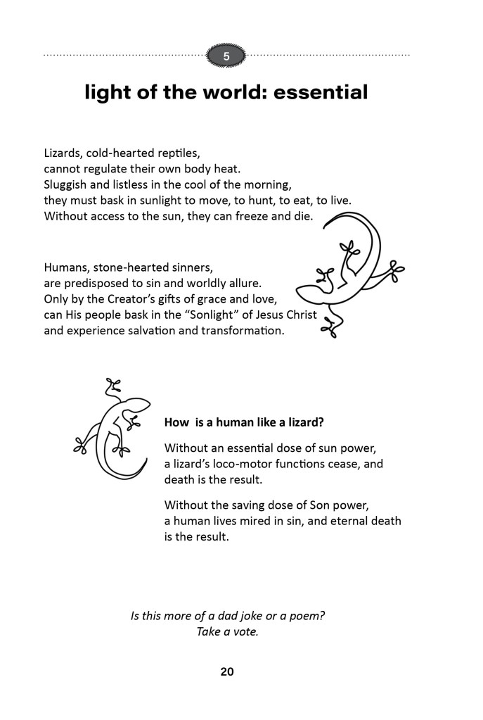 I wrote Light Reflections with family devotions in mind. It is full of devotion-centered poems that combine with interactive “Did You Know?” sections to create a reading experience that is accessible for readers of all ages.
